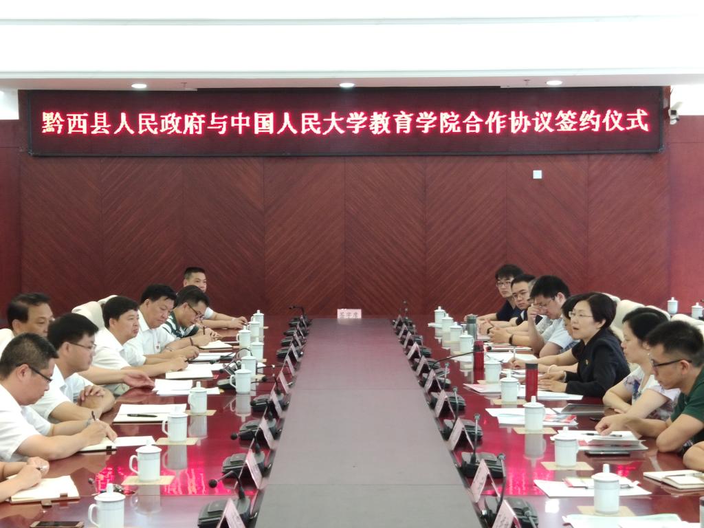 第一时间响应,在省校合作协议签订后即与黔西县人民政府展开多维度、多层次的交流与合作,例如学院派遣师生调研团队赴黔西展开深入调研,撰写贫困地区教育改革与扶贫成效报告,该项目荣获首都大中专学生暑期社会实践优秀成果奖,延伸成果申请省部级课题一项,学院教师和学生也获得了北京市社会实践的相关奖励。黔西教育系统负责人亦受邀赴我校参加首届“新时代中国教育公平与学生发展论坛”并作大会报告。如今恰逢省校合作协议签署一周年之际,学院与黔西县人民政府签署院地框架性合作协议,挂牌成立“黑料
