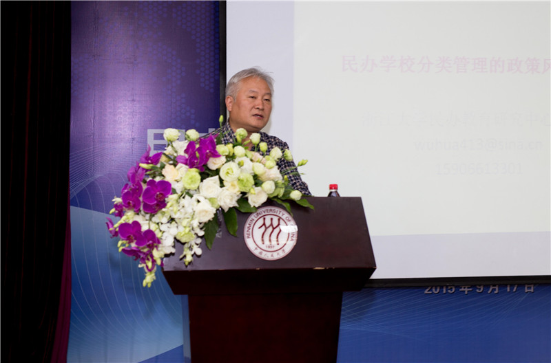 在论坛第三单元,来自浙江大学的著名民办教育研究学者吴华教授和全国人大代表、西安外事学院黄藤董事长分别从学者和民办高校举办者的角度,分析了民办学校分类管理涉及的政策问题与风险,并结合西安外事学院的发展历程深入探讨了分类改革政策对民办学校的实际影响。