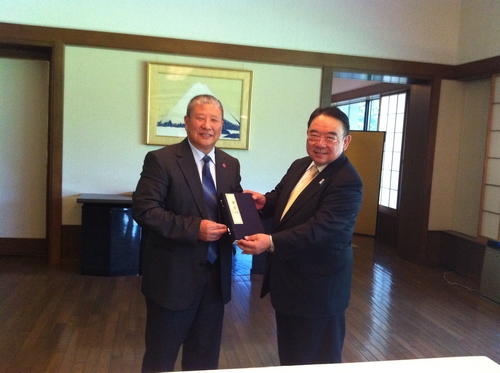 2013年6月27日中午,日本驻华大使木寺昌人在使馆专门设午宴款待纪宝成教授等我院四位教师,午宴前,双方就我校和中国职业技术教育学会与日本相关大学和机构的合作进行了探讨,纪宝成教授(黑料