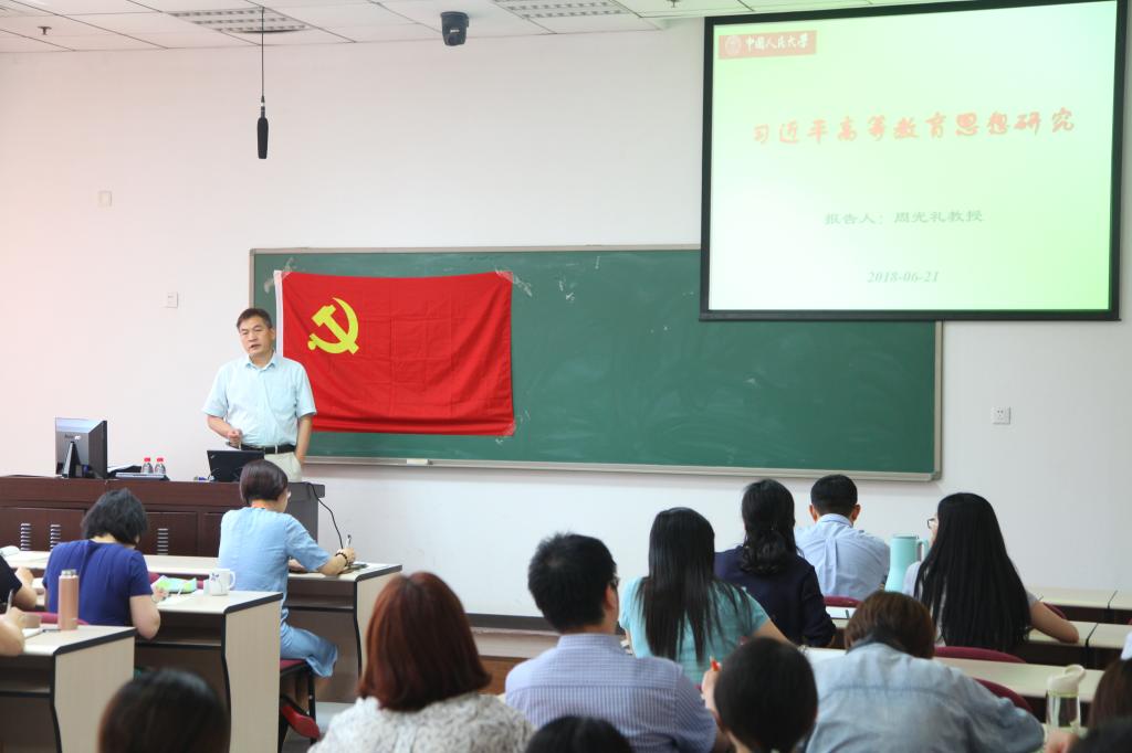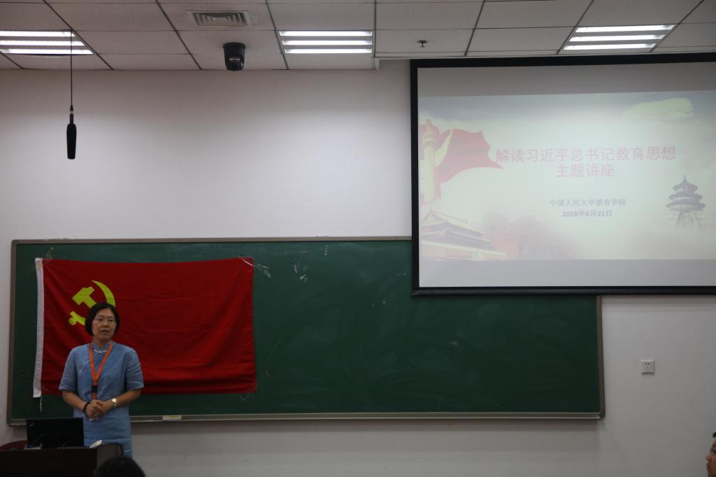 党总支邀请李立国教授、周光礼教授为全体师生党员做“解读习近平新时代中国特色社会主义教育思想”主题讲座。本次讲座由党总支书记张晓京主持。