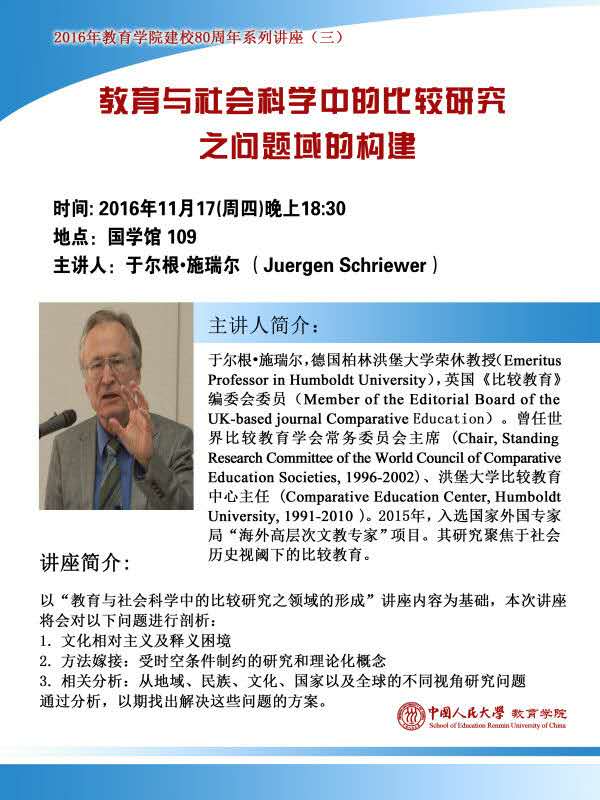 讲座:11月17日施瑞尔教授——教育与社会科学中的比较研究之问题域构建