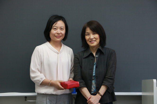 与同志社大学的交流活动能够越办越好,最后,申素平教授代表学院向日方赠送了该交流项目的纪念手册。