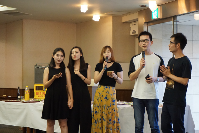 0日晚,访学团参加了同志社大学举办的交流晚宴,晚宴上,访学团就中日文化传统、教育特色等话题与同志社大学师生进行了充分交流。中日双方师生还分别献上了精心准备的节目,在动人的歌声和欢快的舞蹈中晚宴走向高潮。