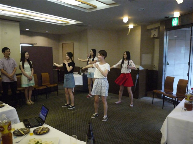 当晚,同志社大学师生为访学团举办了欢送晚宴,我院师生也为晚会表演了多个中日双语歌舞节目,两校师生热情参与其中,气氛活跃,场面热烈。席间,两校教师和学生还就中日两国的教育、文化、生活等各方面内容进行了深入交流。