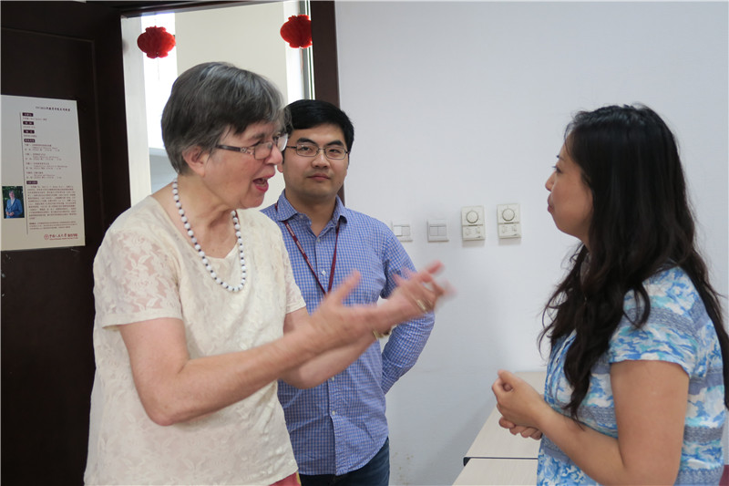 许美德教授在讲座间歇与我院教师讨论问题