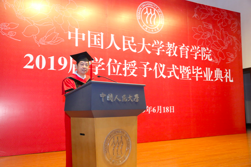 党总支书记兼副院长张晓京研究员、党总支副书记兼副院长申素平教授、副院长李立国教授、副院长周光礼教授以及学院全体教职员工、2019届毕业生和部分毕业生亲友出席学位授予仪式暨毕业典礼。2019年,我院共有7名博士研究生,64名硕士研究生获得学位,顺利毕业。大会由学院党总支书记张晓京主持。