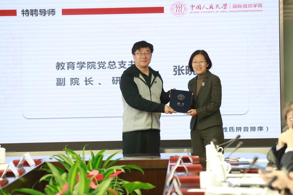国际组织学院揭牌仪式后,刘伟校长为国际组织学院特聘顾问和特聘导师颁发聘书。我院党总支书记兼副院长张晓京研究员受聘为国际组织学院特聘导师。