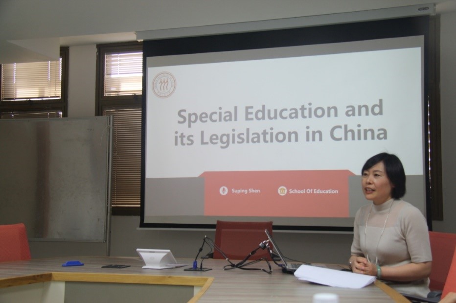 大会议室,我院教师分别作了两场讲座,反响热烈。申素平教授首先作了题为《Special Education and its Legislation in China》的讲座,介绍了我国特殊教育的总体情况及相关法规政策,并解答了以方教授的一些提问。