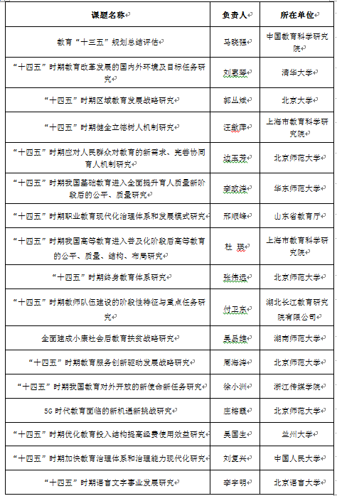 附:教育部办公厅关于教育“十四五”规划研究课题立项情况的公告