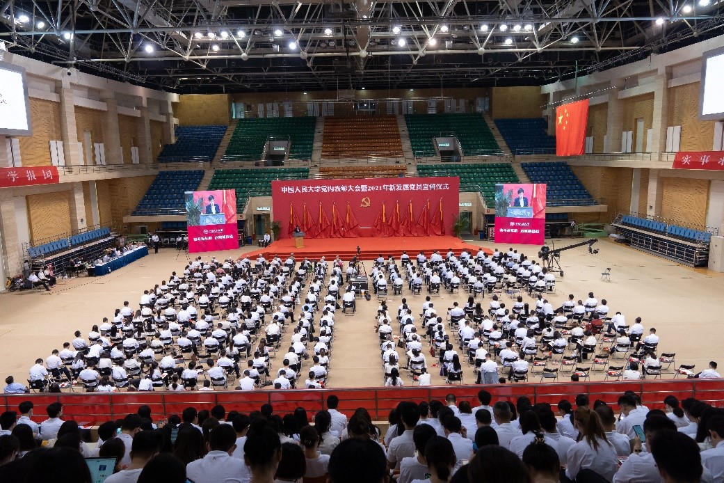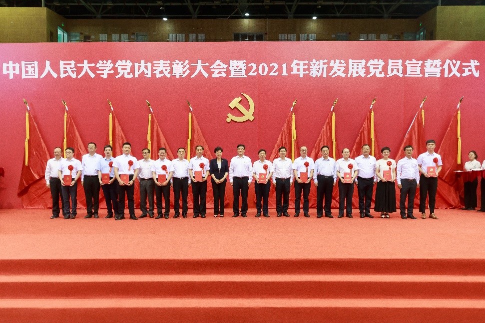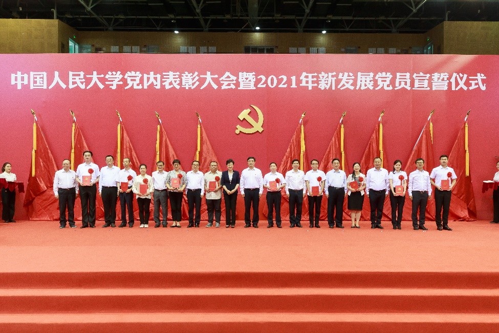 举行党内表彰大会暨2021年新发展党员宣誓仪式。全体在校校领导靳诺、刘伟、吴付来、郑水泉、刘元春、朱信凯、齐鹏飞、顾涛、王轶、胡百精出席会议。党委副书记、校长刘伟主持会议。