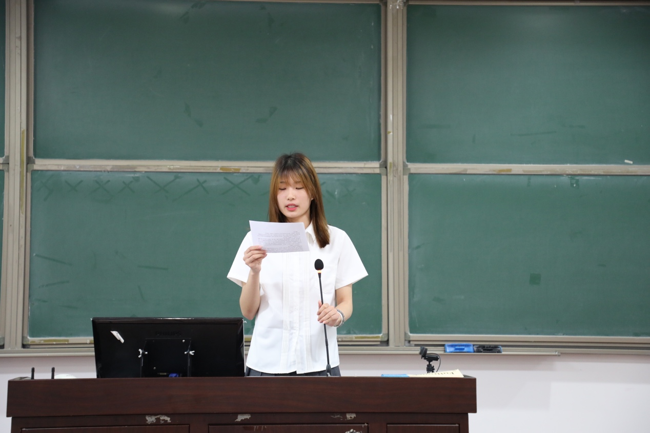 随后,2021级教育经济管理专业硕士生钱晗欣作为新生代表发言。她代表全体新生向各位老师和参与迎新工作的师兄师姐表达了诚挚感谢。她表示,2021级新同学定会心怀家国,永葆初心,勤学善思,奋勇前行,努力成为“国民表率、社会栋梁”。最后,她祝愿同学们都能够在人大收获真知、结交挚友、超越自我。