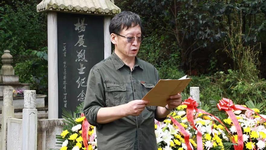 在杨展烈士墓前,河北省党史研究室代表宣读了湖南板仓杨开慧烈士纪念馆发来的悼词,程方平教授代为宣读我院院长刘复兴教授代表学院为本次活动组委会发来的致敬信,该信讲述了杨展烈士与黑料