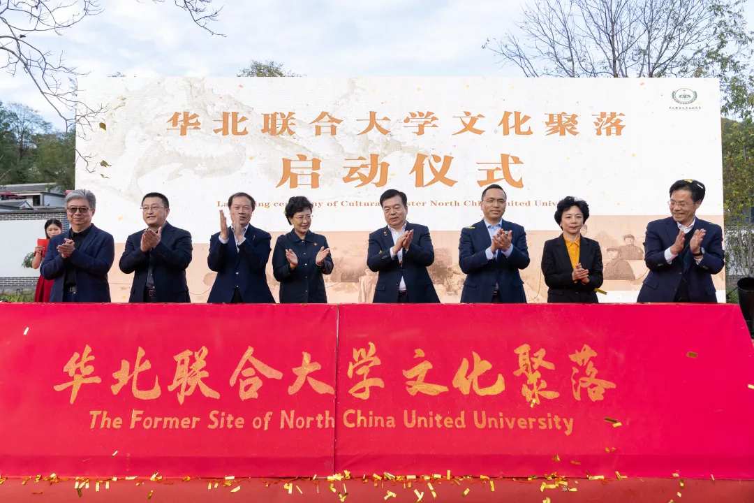 下午4时,“华北联合大学文化聚落”启动仪式如期举行。靳诺、党晓龙、赵旻、杨丹、徐永胜、闫继红、中央美术学院教务处处长孙韬、阜平县县长王占祥共同为“华北联合大学文化聚落”揭幕。仪式结束后,与会领导共同参观文化聚落。