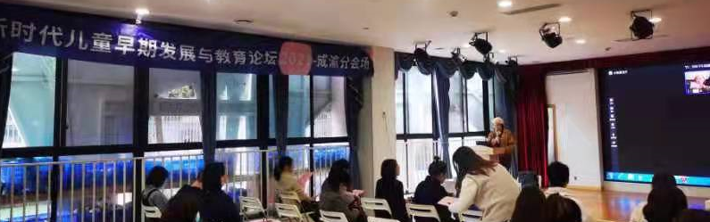 成渝分会场由成渝学前教育联盟组织,研讨主题为“环境创设和教材”。成都大学艺术学院张蔚教授与四位托育中心的园长分享了环境创设对婴幼儿照护服务的重要性与影响因素的实践成果。