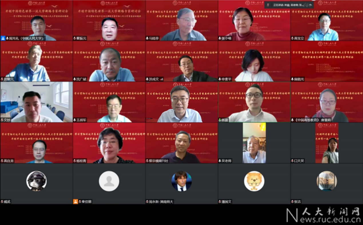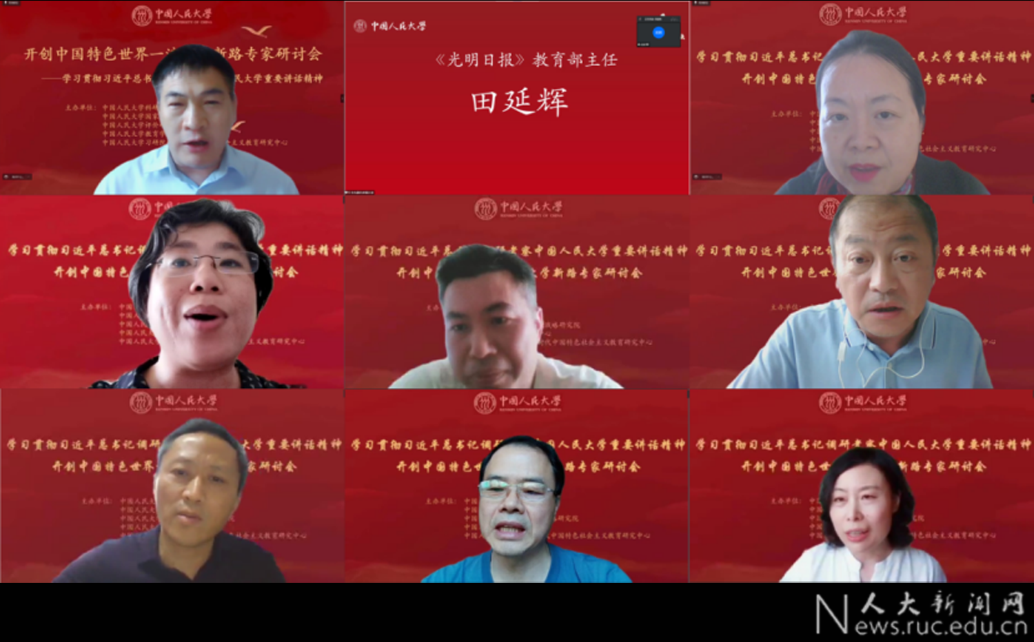 重要讲话精神谈了体会,并就人大应该怎样走出这样一条新路的问题进行了分析。他指出中国高校要坚持党的领导,回应党和国家的号召,坚持立德树人根本任务。他认为在学校层面,人大要做新路的探索者;在学科层面要构建中国自主的知识体系;从教师层面来讲,要做到“经师”与“人师”结合;在学生层面,要培养“复兴栋梁、强国先锋”。