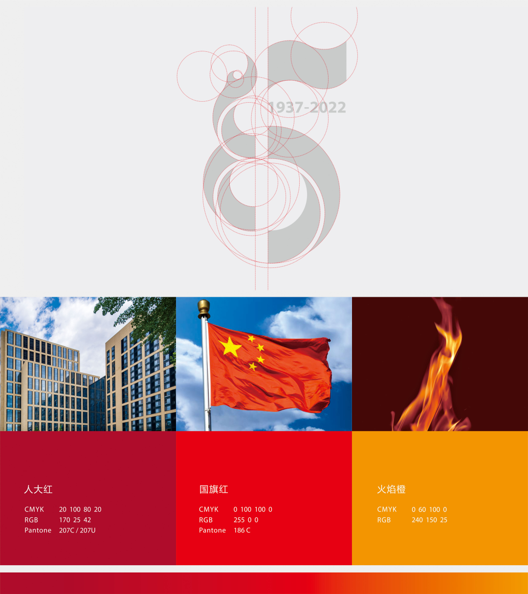 标识渐变色由国旗红过渡到人大红,象征黑料