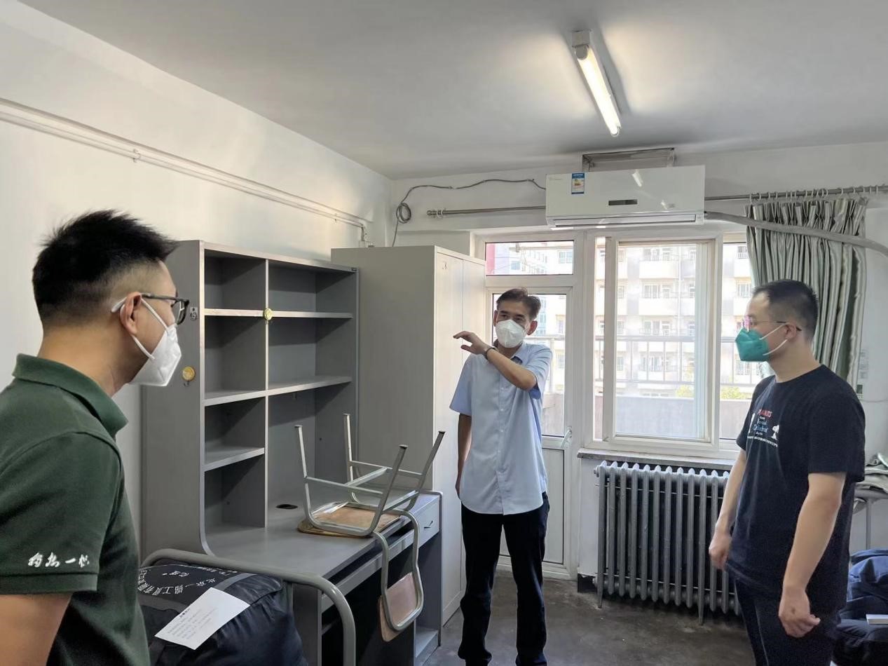 刘复兴、崔盛到访品园楼群和青年公寓的新生男生宿舍。刘复兴表示,新生的适应问题和学业发展是学院关注的重点,新生有任何疑问和情况可以随时和学院老师反馈,并鼓励同宿舍的在校新生和未到校新生通过各种渠道进行交流。崔盛向新生解读了学校防疫政策,叮嘱新生遵守、配合学校和学院的疫情防控要求。老师们还对新生的情况进行全面了解,为初入校的新生送去温暖与关怀。