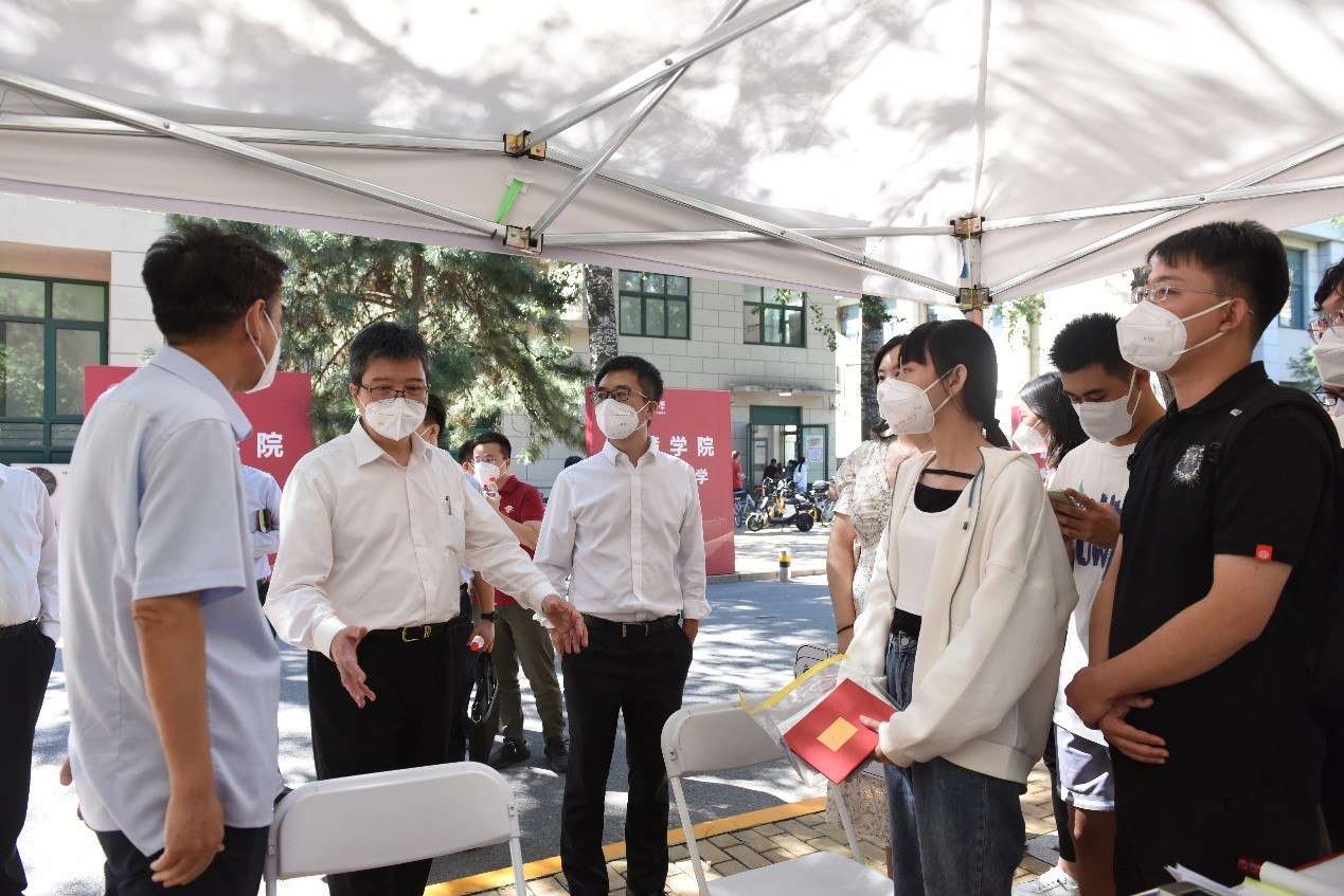 监察专员吴付来,党委副书记郑水泉,党委副书记齐鹏飞,党委副书记,副校长胡百精先后来到我院迎新点,了解学院基本情况和迎新工作进展,慰问现场志愿者,并与新生同学亲切交谈。