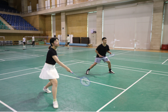 半决赛中,A2组对阵B2组的比赛可谓扣人心弦,双方的前场分别是孙颖慧同学与刘玉梅同学,后场分别是雷雳老师和叶阳永老师。两位老师吊球、平抽、扣球样样齐全,双方比分你追我赶,一直未能拉开明显差距。临近赛点,比分更是戏剧性地连连追平。最后关头,A2组连拿两分锁定胜局。最终取得了两场来之不易的胜利,挺进决赛。