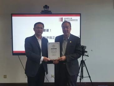 讲座结束后,刘甡为刘宝存颁发讲座纪念证书。