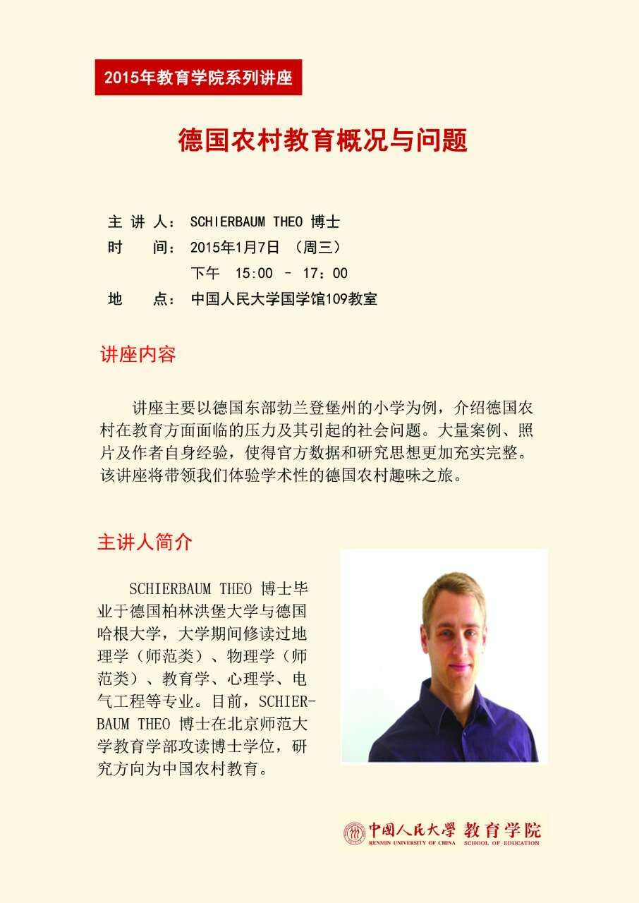 讲座:1月7日北师大SCHIERBAUM THEO博士-德国农村教育概况与问题