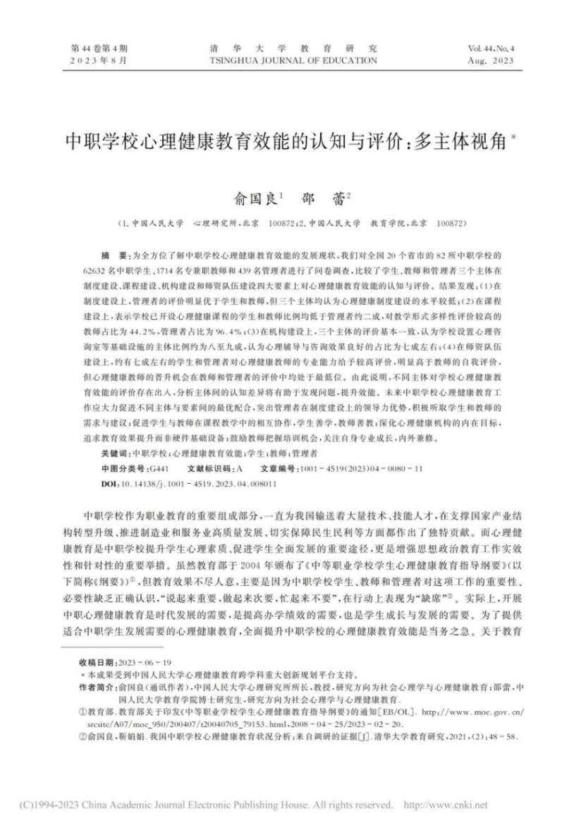 博士研究生,研究方向为社会心理学与心理健康教育。原文载于《清华大学教育研究》2023年第4期。)